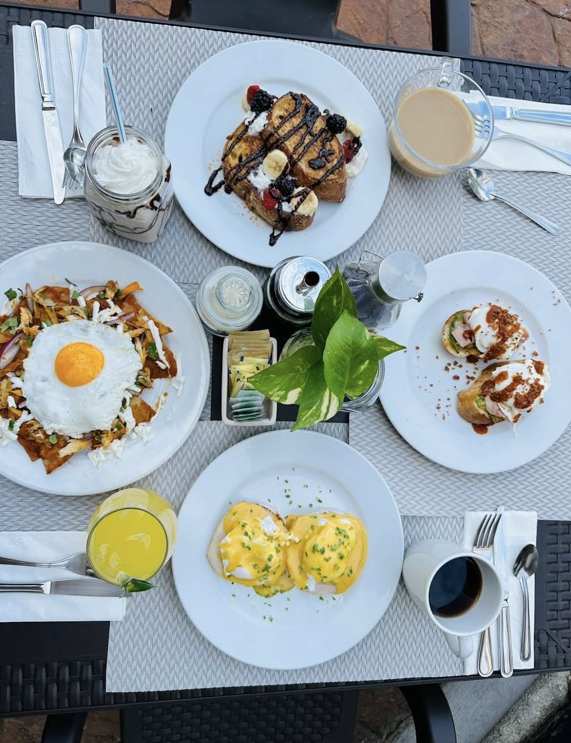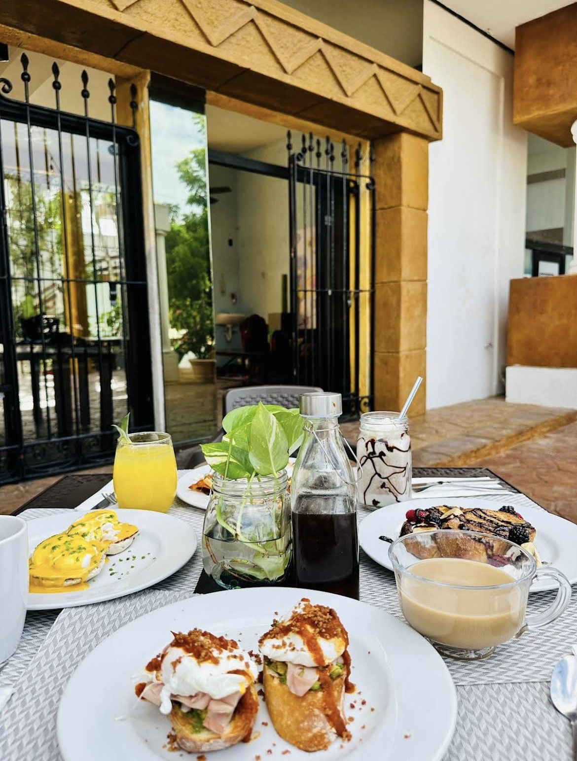 La cocina se centra principalmente en desayunos y brunch, con platos preparados al momento que destacan por su frescura y personalización. Opciones como huevos Benedict, tostadas dulces o cafés especiales forman parte de una propuesta sencilla pero muy bien ejecutada, donde cada elemento se siente pensado y cuidado.