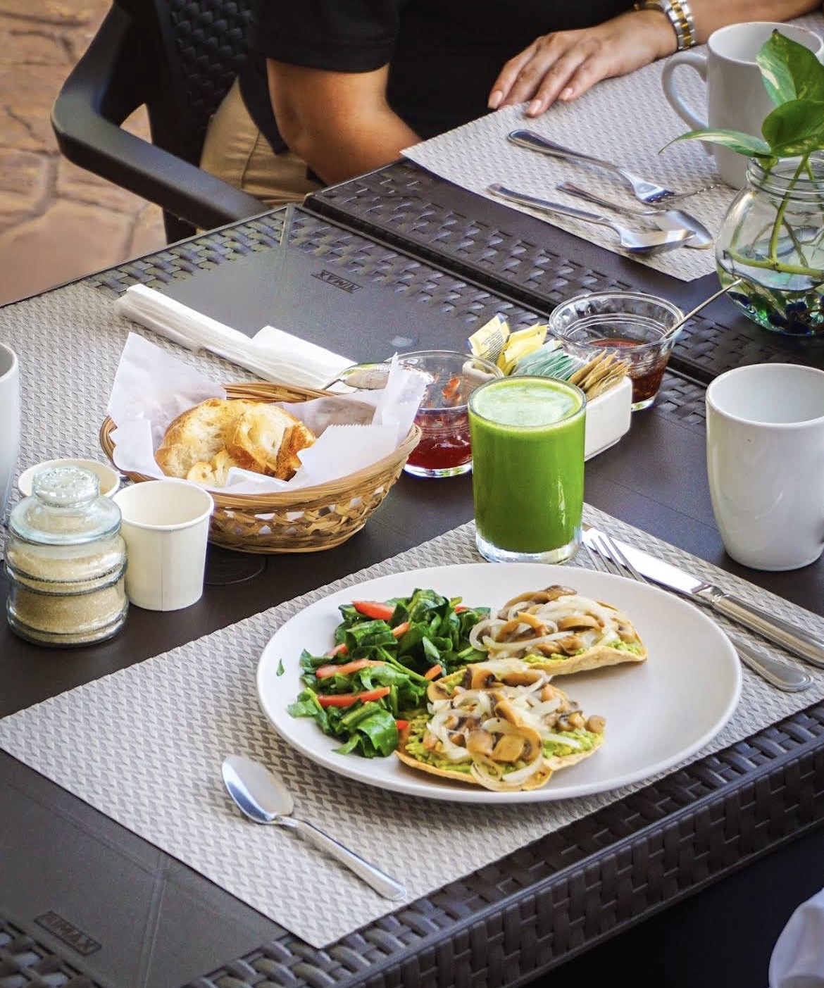 El ambiente es íntimo, relajado y casi doméstico. Espacios pequeños, vegetación, brisa natural y una atención cercana crean una sensación de lugar escondido, donde el tiempo se desacelera. No es un restaurante de paso rápido, sino un sitio para quedarse, conversar y disfrutar sin prisa.